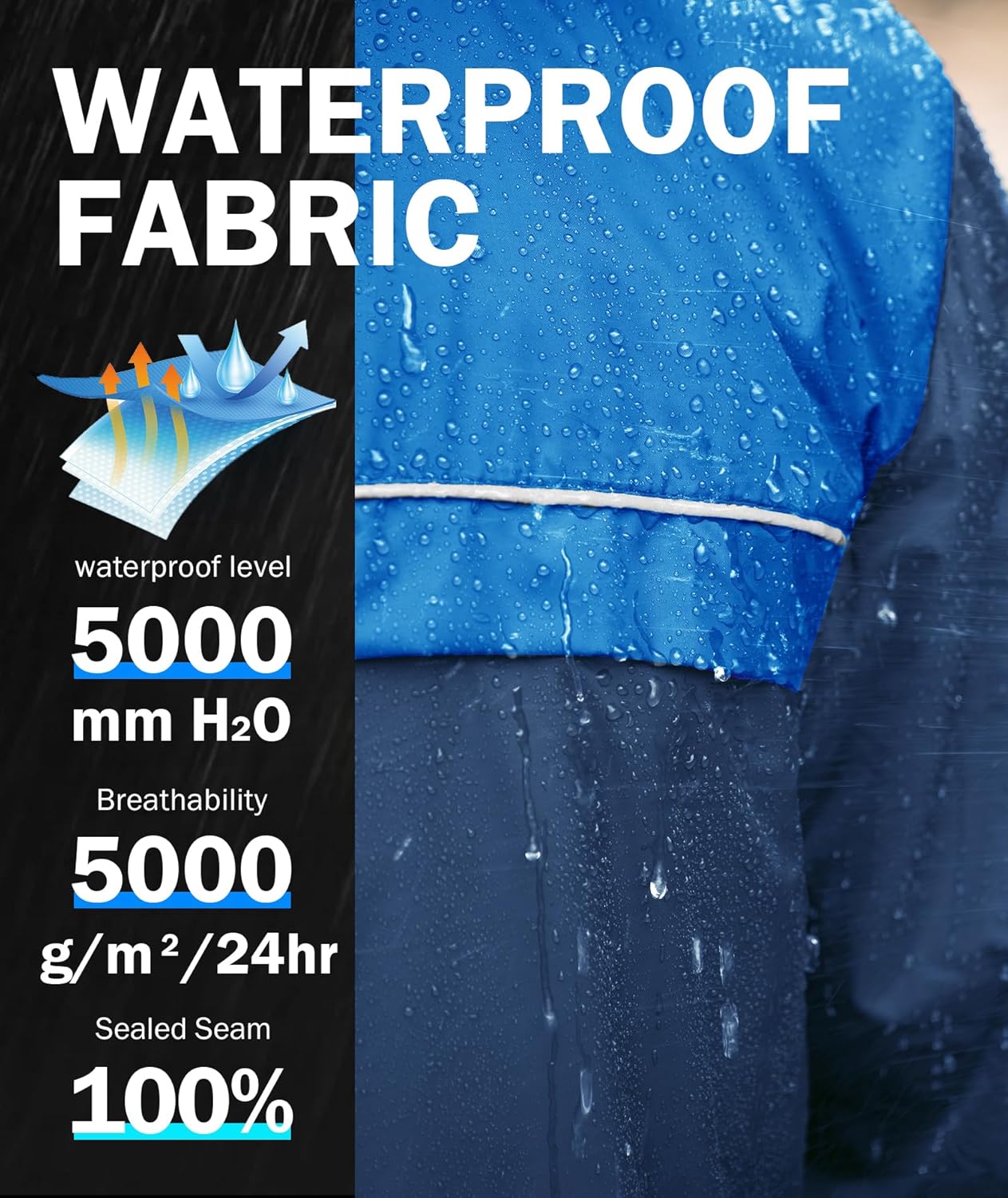 • 【Waterproof & Windproof】 rain jacket for men waterproof with hood features 5000mm level waterproof outer shell.Fully taped seams, premium stitching make them waterproof.All zippers run smoothly and are resistant to water penetration.Mens lightweight windbreaker jackets features 2 layer fabric construction outer watperproof shell & innner soft mesh ensures you warm and dry on rainy or windy days