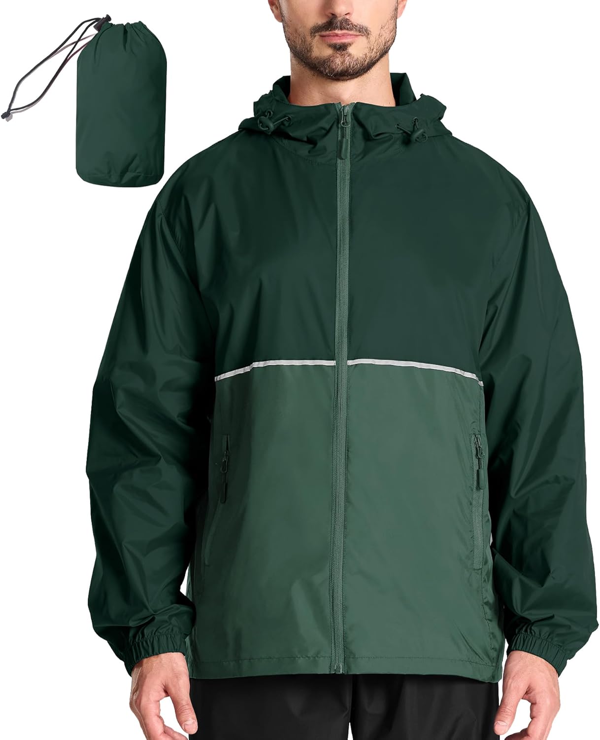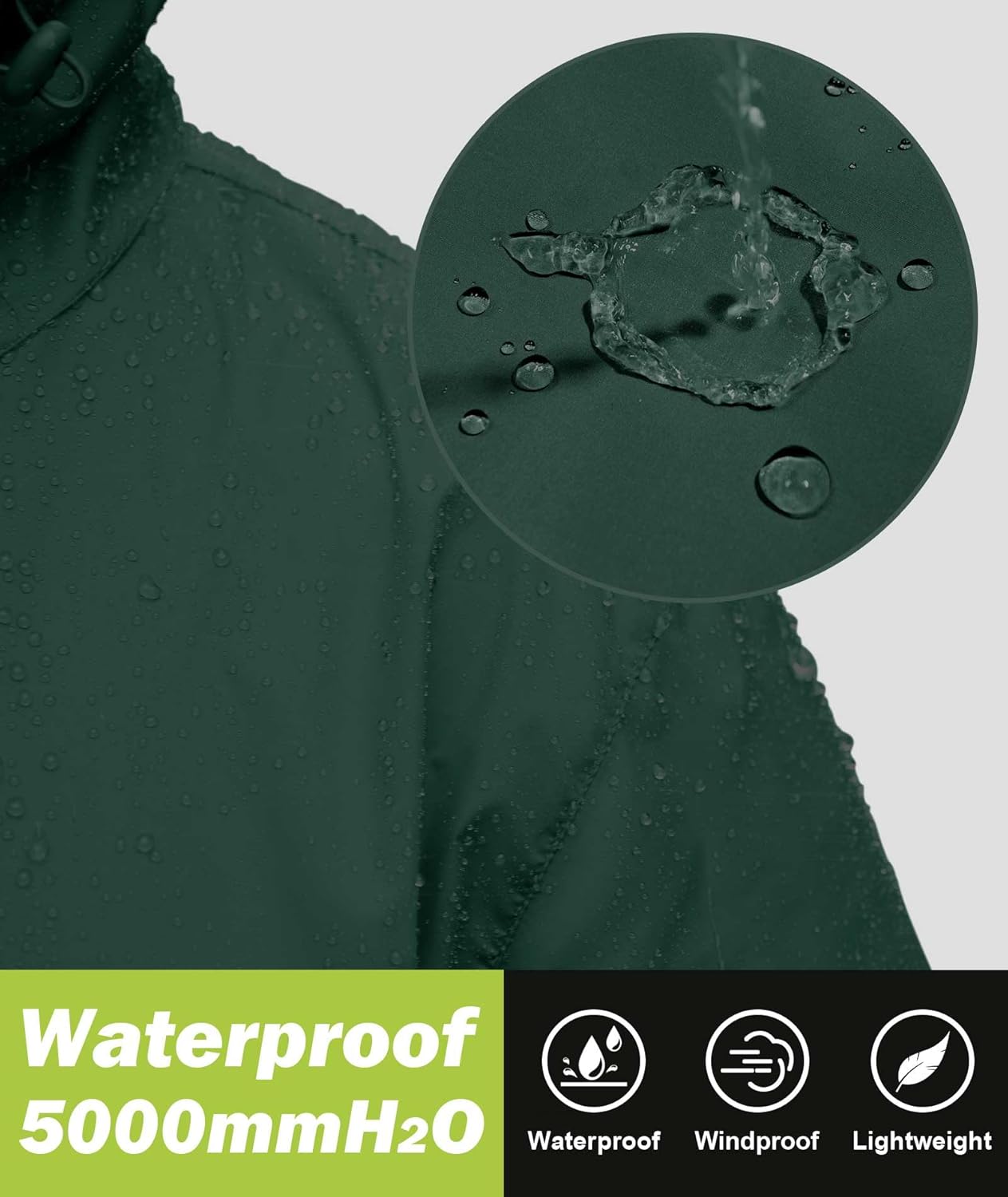 • ๐–๐š๐ญ๐ž๐ซ๐ฉ๐ซ๐จ๐จ๐Ÿ ๐…๐š๐›๐ซ๐ข๐œ๏ผšThe men’s rain jacket offers excellent wind and water resistance, boasting a waterproof rating of 5000mm, making it perfect for outdoor activities