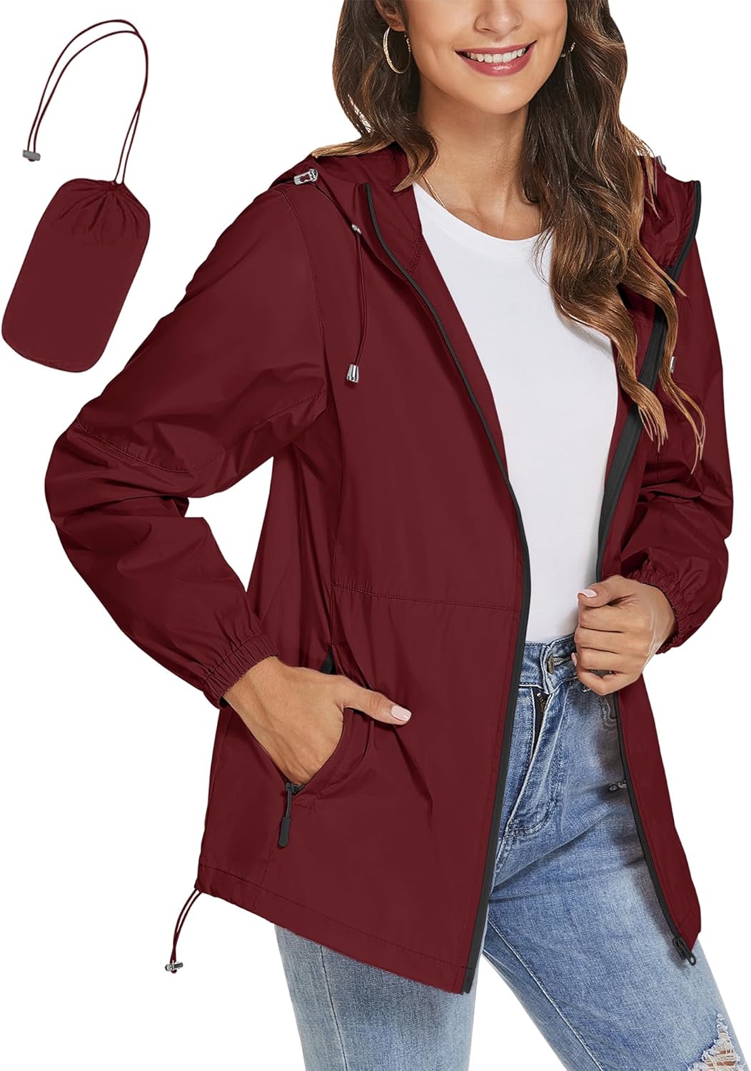 - ☔Versatile and Timeless: Lightweight rain jacket is rainproof, windproof, and sun-proof, this light raincoat is perfect for any outdoor activity, whether you’re hiking, camping, cycling, running, fishing, hikebound, travel, cruise or just taking a morning walk. It’s ideal for all seasons and will keep you dry and comfortable.